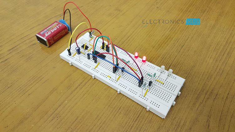 - If you want to set the different time delays for LED’s then vary the resistance (R1, R2) or capacitance (C1).