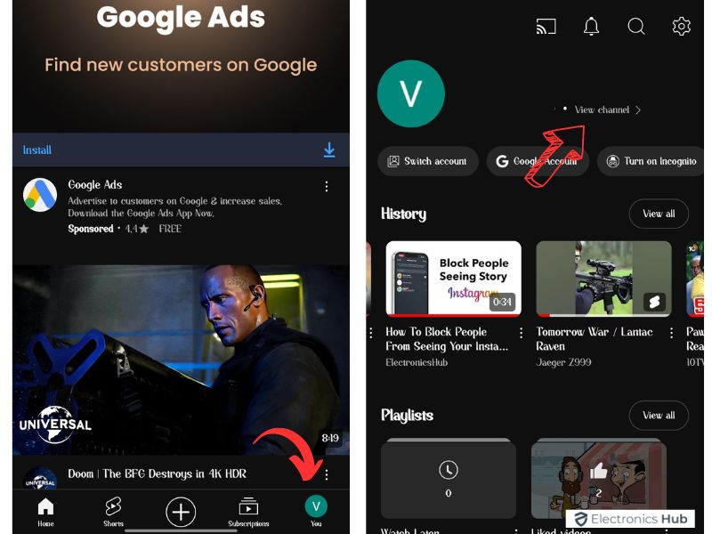 - View Your Channel: Select “View Channel” next to your username or handle.