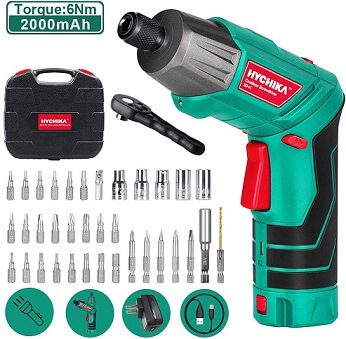 | Hychika Electric Screwdriver | 3.6 V | 6 Nm | 2000 mAh | 180 rpm | Check On Amazon |