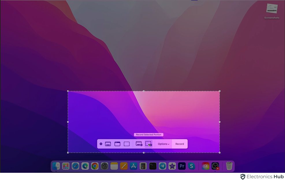 - You can choose to “Record the Entire Screen” or click and drag to “Select a Specific Portion” of the screen.