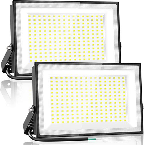 The Onforu 200W LED flood light is a pair of floodlights crafted to efficiently brighten outdoor areas while reducing energy costs. Emitting an impressive 18000lm brightness via 252 ultra-bright LED beads, these floodlights produce daylight white light, perfect for various outdoor settings such as garages, yards, gardens, stadiums, playgrounds, and arenas. With a broad 120° beam angle, they ensure consistent lighting devoid of shadows, enhancing visibility throughout the area.