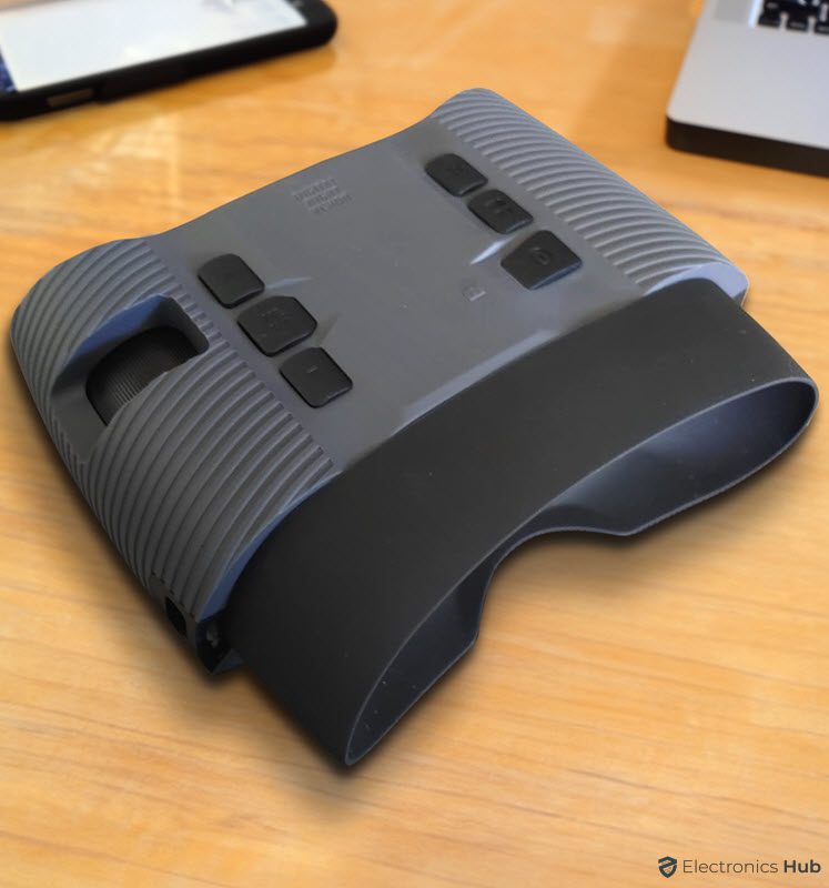 If you look at the overall design aspect of the ACPOTEL BNV21 Night Vision Binoculars, it looks and feels like a traditional binoculars. But technically it is a monocular in the sense that it has a single “lens” even though everything is digital. The front (where the lens would be) has an opening for the main image sensor on the right side while there are a couple of IR Sensors on the left. Just beside these IR Sensors, we have a slot to insert the battery.