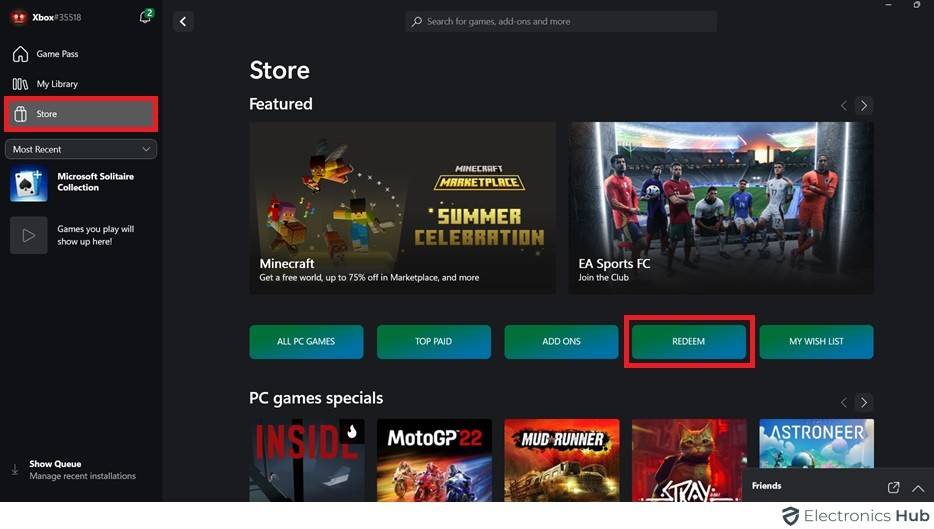 - Open the Xbox app and choose “Store” from the left menu.