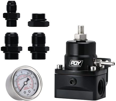 - Since the motorheads crave more and more performance, our first choice is the most powerful and high-pressure offering regulator. The JOHAHTANG Fuel Pressure Regulator was made for pure performance, It offers a 0 to 140 psi pressure setting which gives those extra pressure requirements at high engine speeds. The body is made up of aluminum adding to its stiffness. This regulator is a universal regulator and hence suitable for most fuel injection engines. The adjustment to the pressure levels is done on the go without interfering with the electronics, which is a plus point. It also comes with a pressure gauge to keep an eye on the readings.