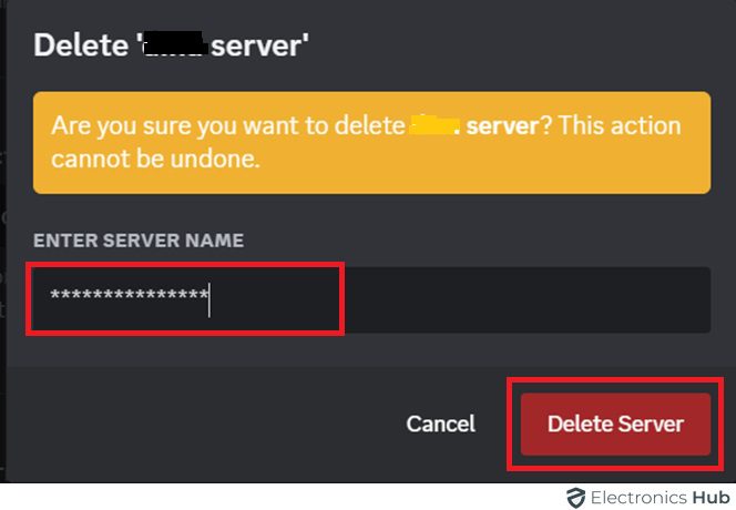 - Confirm by “Clicking Delete Server”