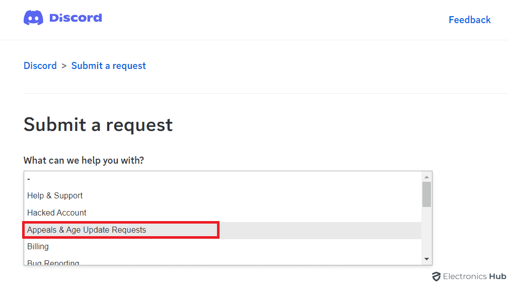 - In the “What can we help you with?” section, select “Appeals & Age Update Requests.”
