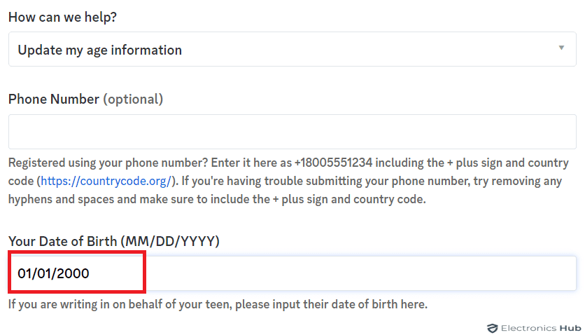 - Enter the subject and description in their respective fields. In the description, explain why you want to update your age.