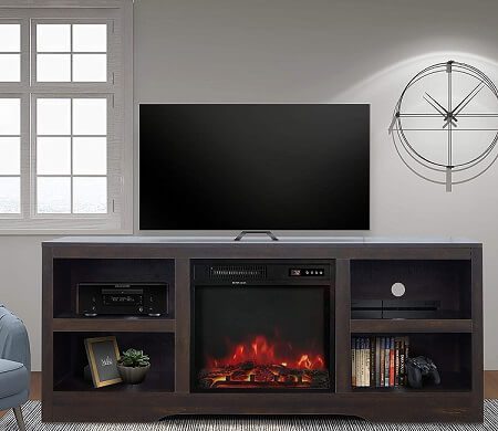 The Ameriwood Home Carver Electric Fireplace is also one of the versatile options that we have selected for this list around a budget-friendly price range. It is quite a simple option in terms of design and looks like 2 open compartments and 2 closed ones with internal dividers. So, the additional storage space will definitely come in handy in the long run. You will also get a reliable build quality with the Ameriwood Home Carver Electric Fireplace, offering up to 90 lbs weight capacity.
