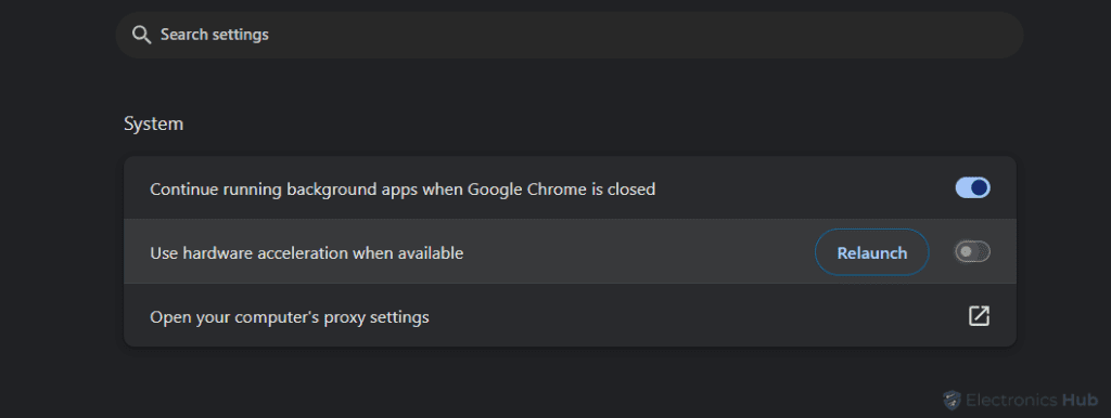 - Disable Hardware Acceleration in your browser’s system settings to prevent potential streaming errors.