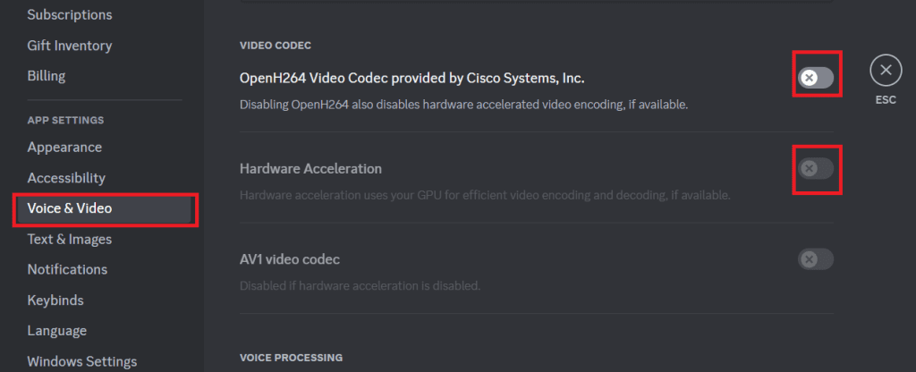 5. Access Settings: Click on “Settings” at the bottom-left corner, adjacent to the Unmute and Deafen icons. Navigate to “Voice & Video” under the Accessibility header in the left panel.