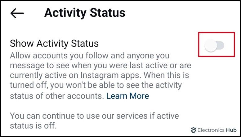 - Turn off the option to show your activity status.