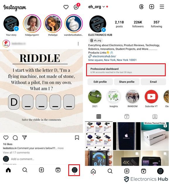 - Once you’ve switched, go back to your profile and tap “Professional Dashboard” below your bio.