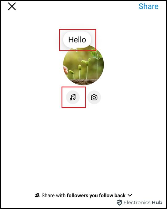 - Tap on the “note” icon above your profile picture to create a new Note.