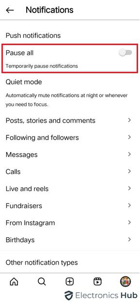 - You can either toggle Pause All to stop all notifications temporarily or go through each category and turn off the toggles for specific types of notifications you don’t want to receive.